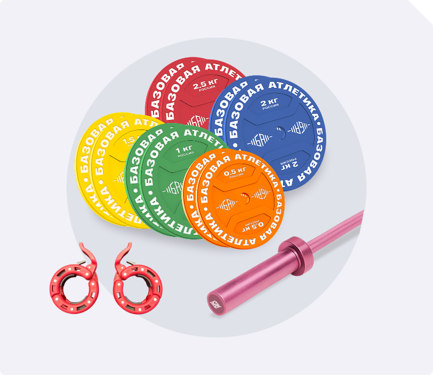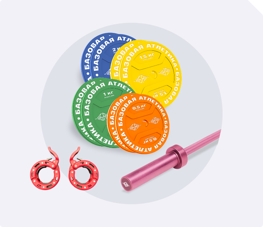 Комплект облегченной штанги “Tехника 1" до 18 кг с розовым грифом